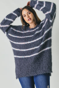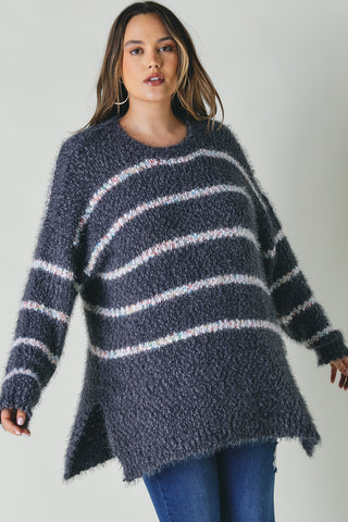 Imported 1XL.2XL.3XL PLUS SWEATER WITH STRIPE DETAIL 58% Polyester 28% Nylon 14% Acrylic Charcoal Grey DAV
