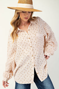 Elevate your casual wardrobe with our Printed Cotton Gauze Button Down Woven Shirt, a perfect blend of comfort and effortless style. Designed with an oversized, relaxed fit, this shirt offers a laid-back look that pairs well with everything from jeans to skirts. Crafted from 100% soft cotton gauze, this shirt features a lightweight, breathable fabric that makes it ideal for year-round wear. ��