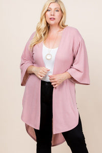 Made In U.S.A 1XL.2XL.3XL Plus Size Solid Hacci Brush Open Front Long Cardigan with Bell Sleeves 74% Rayon 22% Polyester 4% Spandex Mauve EME