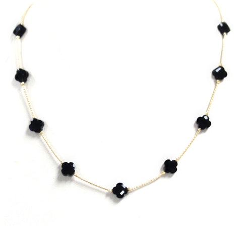 Introducing our Clover Station Necklace, a charming and versatile accessory that adds a touch of elegance to any outfit. Available in a variety of colors including blue, crystal, black, pink, and turquoise, this necklace features a delicate clover station pendant design, exuding timeless beauty and sophistication.