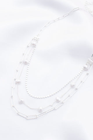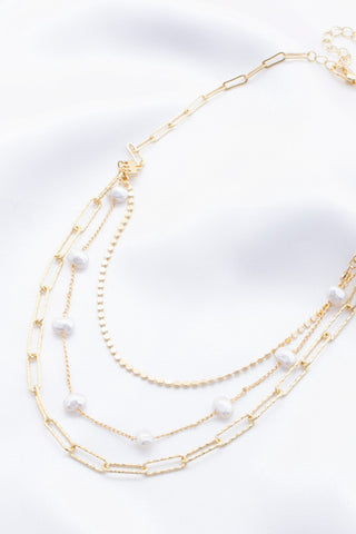 ImportedPEARL BEADED OVAL LINK LAYERED NECKLACEGold.Silver FBJ