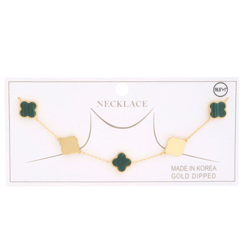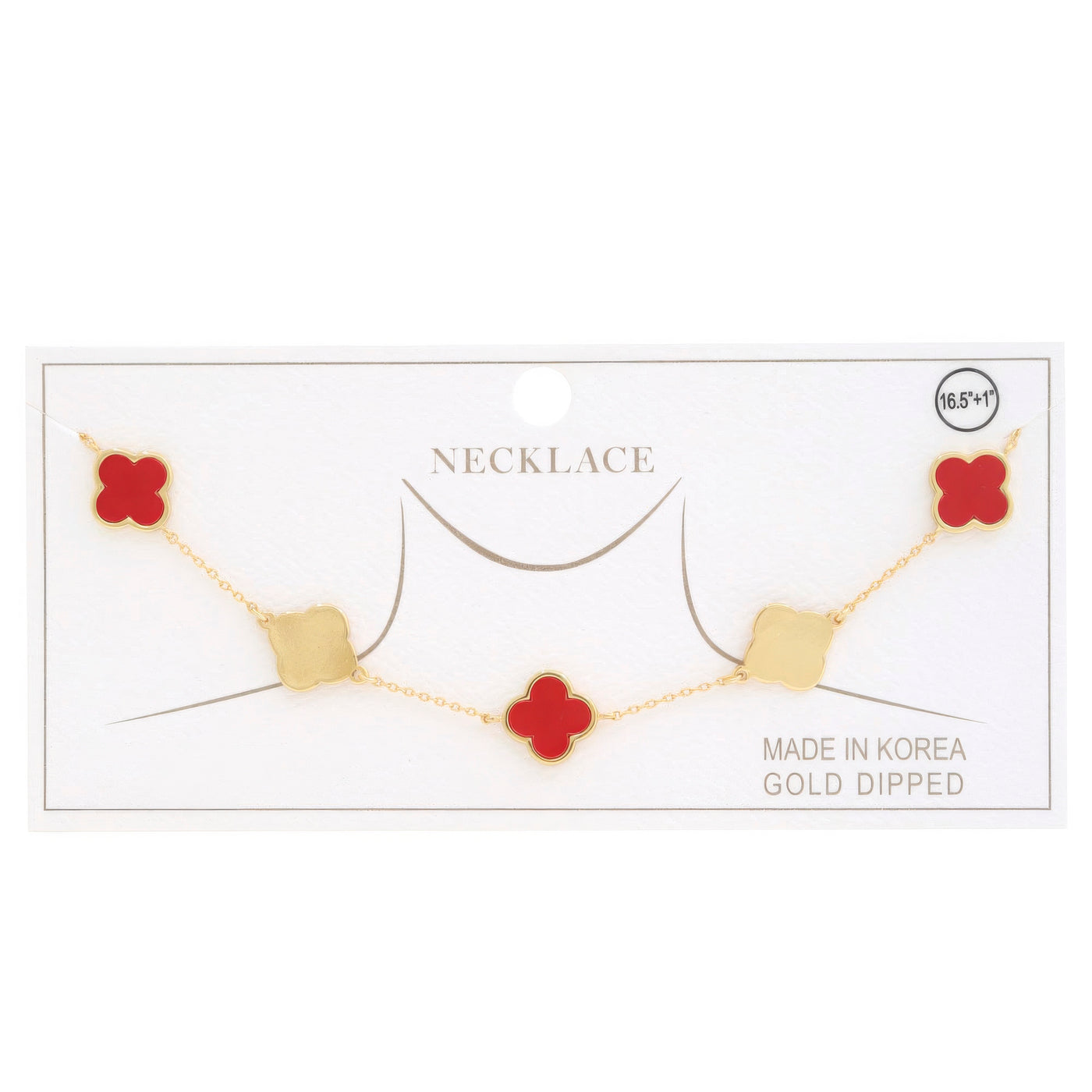 Elevate your style with our Clover Charm Station Gold Dipped Necklace in your choice of vibrant colors. Add it to your jewelry collection now and let your personality shine!