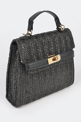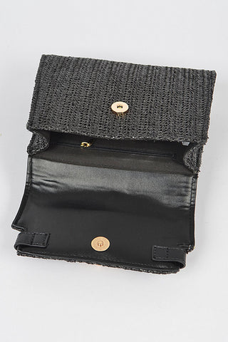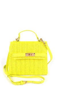 Imported FAUX STRAW TOP HANDLE CLUTCH Yelloe.Green.Pink.Beige.Black FBJ