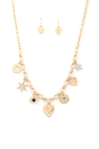 Imported HEART EVIL EYE CHARM METAL NECKLACE Gold. FBJ