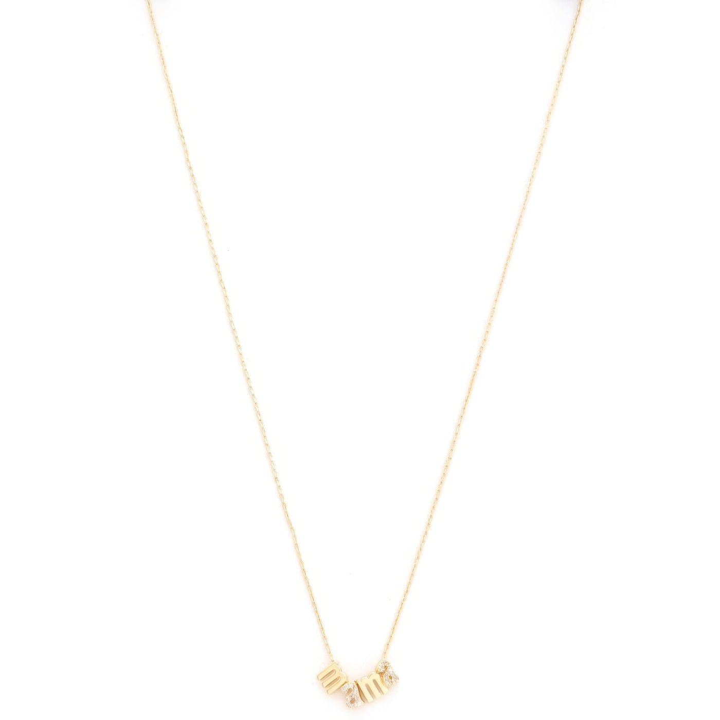 - Design: Mama metal necklace featuring the word "MAMA."