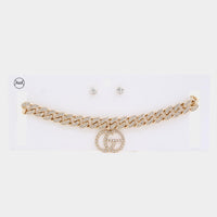Imported DOUBLE CIRCLE RHINESTONE CHARM CURB LINK CHOKER NECKLACE Gold. Rhodium FBJ