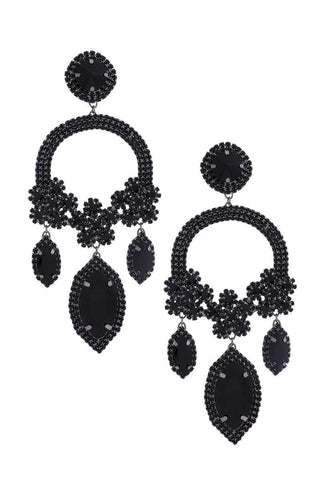 Inform when this item available: Marquise Flower Rhinestone Dangle Earring - Black
