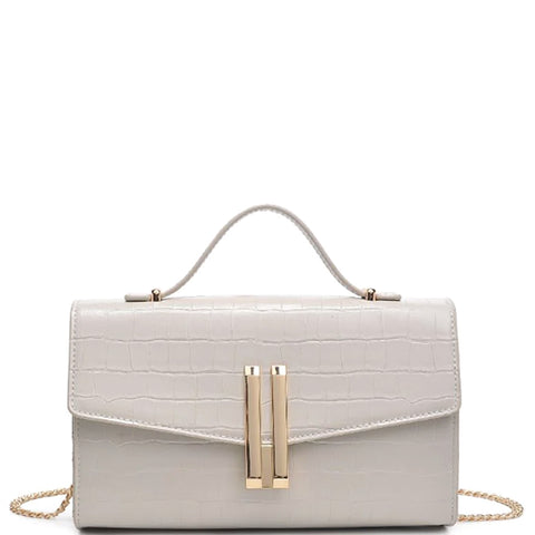 Elevate your style with our chic Croc Print Crossbody Bag, a sophisticated accessory that effortlessly blends timeless design and modern functionality. The top handle and gold hardware enhance its elegance, while the extra chain offers versatility, allowing you to wear it in different ways to complement any outfit. The croc print adds a touch of sophistication and texture, making this bag a must-have in your collection.