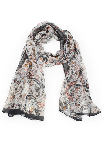 Paisley Print Chiffon Scarf - Black