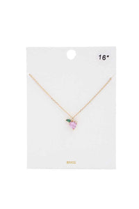 Imported HEART LEAF CHARM STONE NECKLACE Pink FBJ