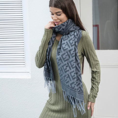 Elevate your winter wardrobe with our Maze Pattern Blanket Scarf with Tassel. This oversized scarf features a unique maze pattern and playful tassels, adding both warmth and style to any outfit.