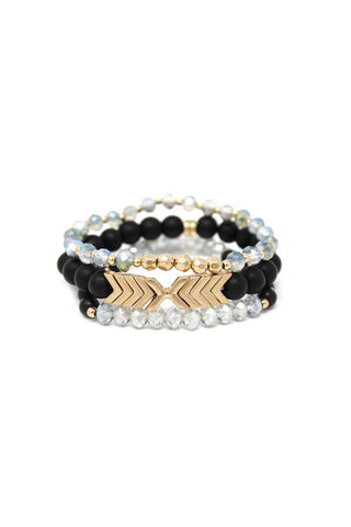 Inform when this item available: Natural Stone Glass Bead Stretch Multi Bracelet 3 Pc Set - Black