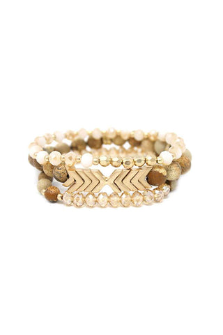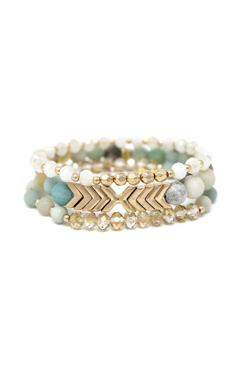 Imported NATURAL STONE GLASS BEAD STRETCH MULTI BRACELET 3 PC SET Black.Brown.Multi.Mint.Grey FBF