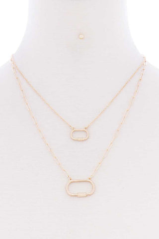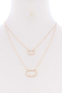 Inform when this item available: 2 Layered Chain Oval Pendant Metal Necklace Earring Set - Gold