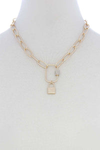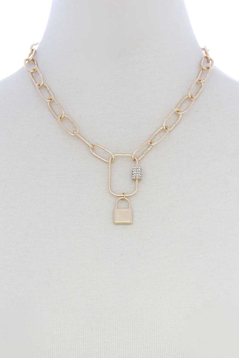 ImportedLOCK CHARM OVAL LINK METAL NECKLACEGold. Rhodium FBJ