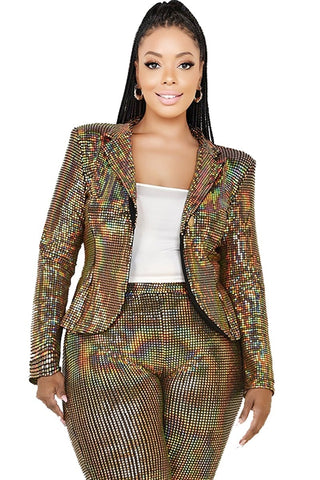 Inform when this item available: Plus Disco Metallic Sequins 2 Piece Jacket Set - 1XL