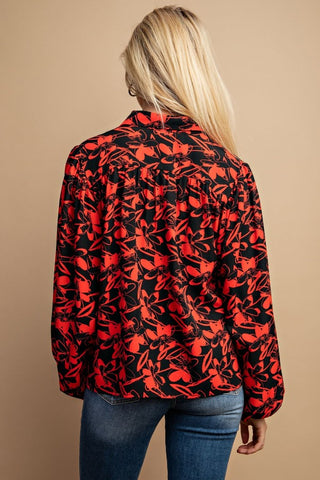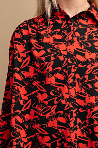 Add a touch of elegance to your wardrobe with our Floral Print Button Down Blouse in Red. Add it to your cart now and experience the perfect blend of comfort and style!