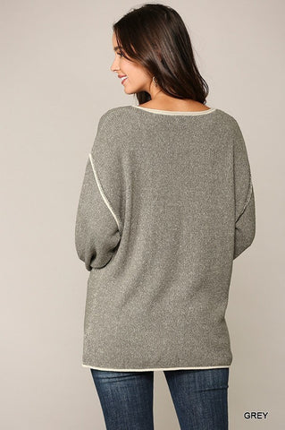 Imported S.M.L Two-Tone Sold Round Neck Sweater Top with Piping Detail 65% Acrylic 35% Nylon Grey GIG