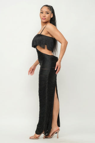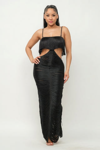 Perfect for formal galas, cocktail parties, or upscale events, our Lux Fringe Maxi Dress effortlessly adapts to various occasions, ensuring you stand out with style.