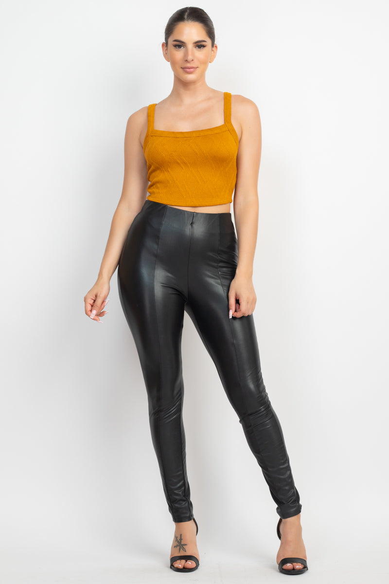 Imported S.M.L A set of ribbed fashion tops in a geometric pattern featuring a sleeveless inner top, a square neckline, and cropped hem paired with a long puff sleeves blazer in a scoop neckline, and a button-front closure. 95% Polyester 5% Spandex Mustard IRI
