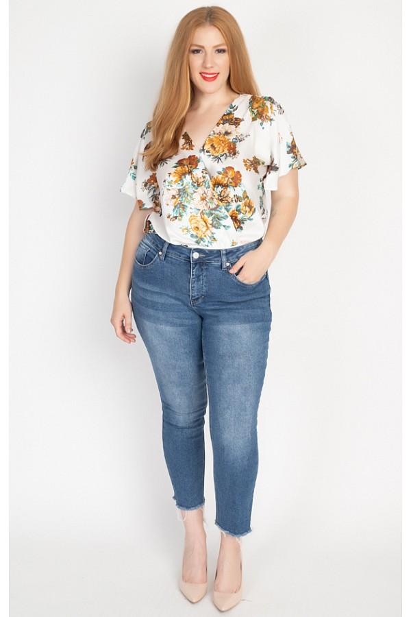 Inform when this item available: Floral Print Front Warp Bodysuit - 1XL