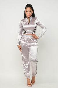 Front Zip Up Stripes Detail Jacket And Pants Set Sale