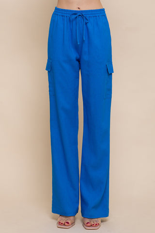 Imported S.M.L Straight leg cargo linen pants 55% Linen 45%Viscose Azure LOV