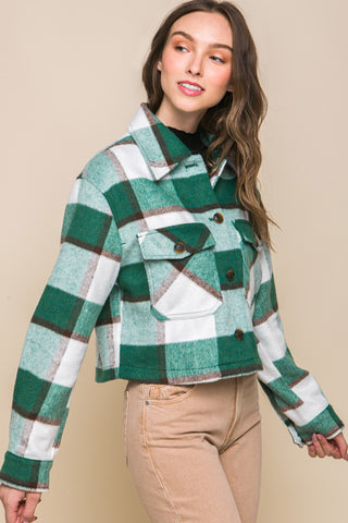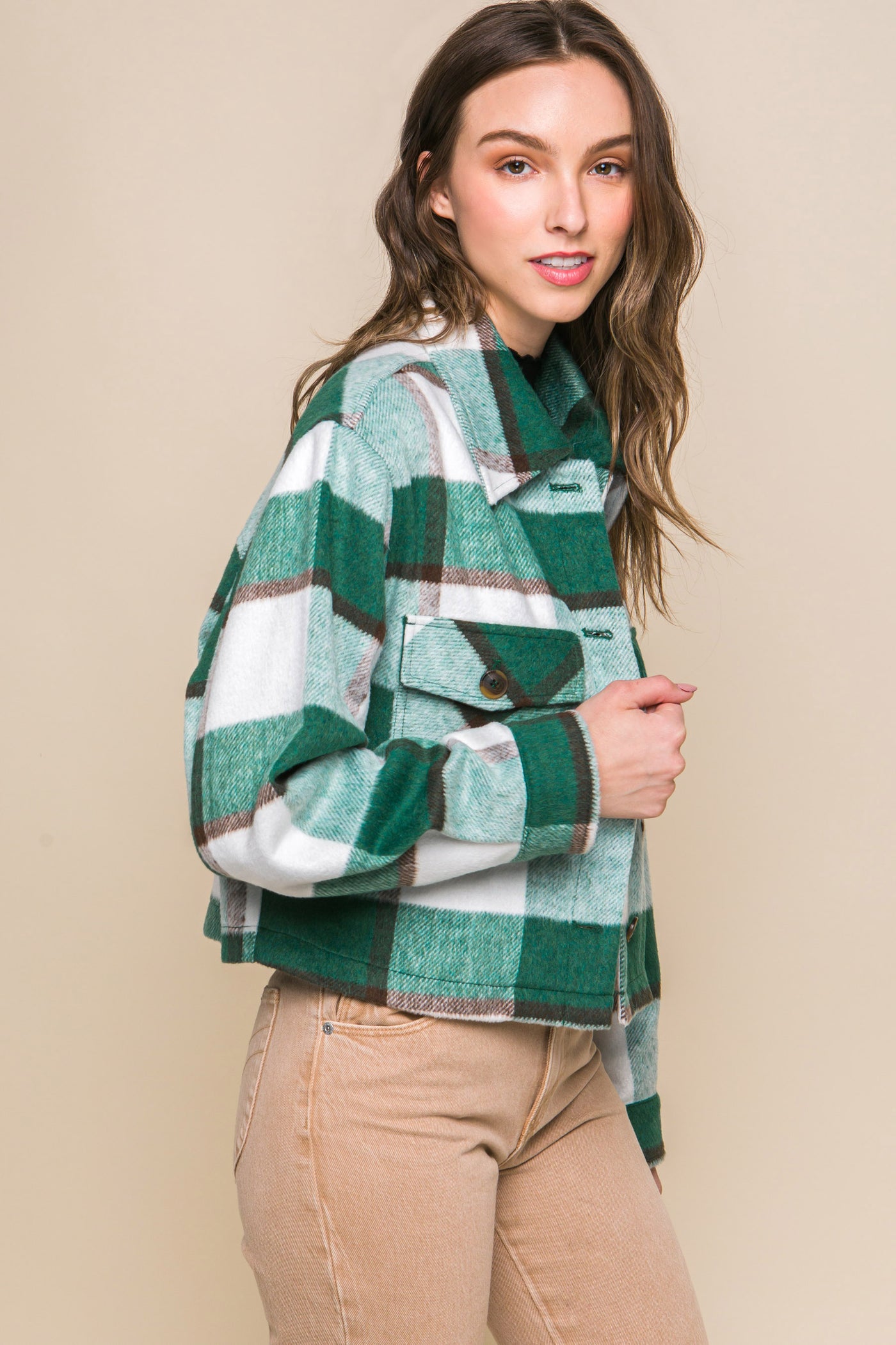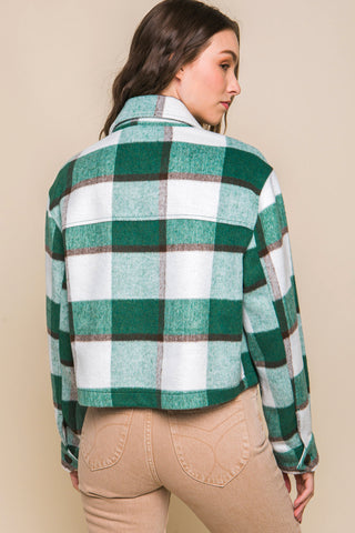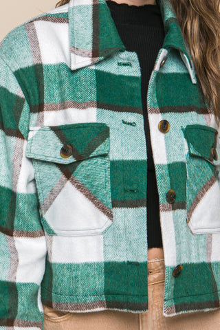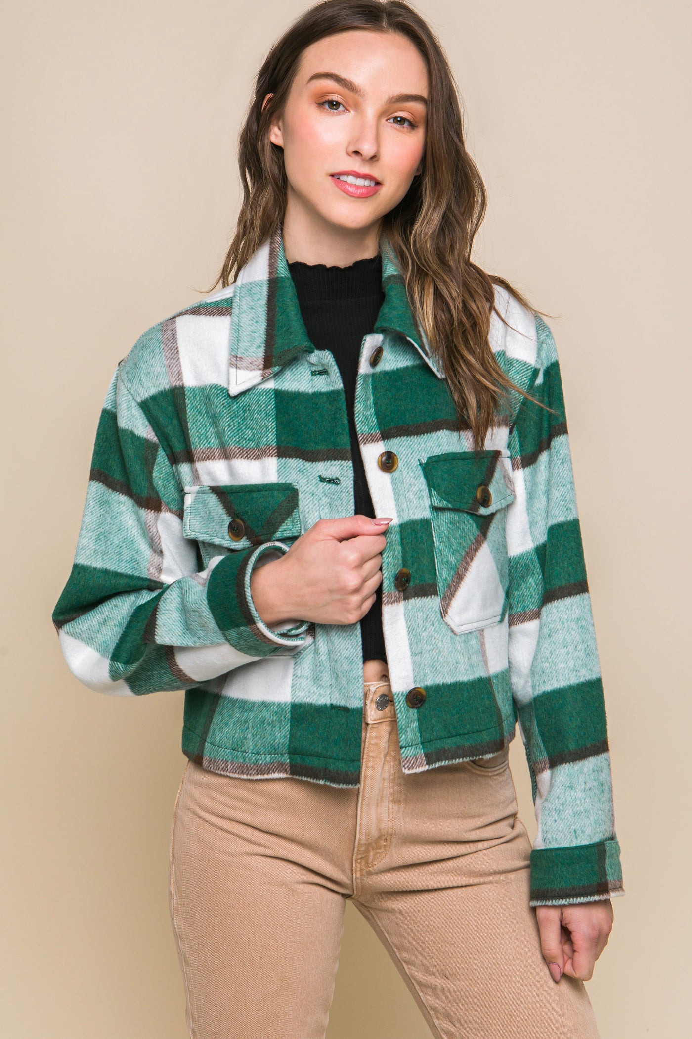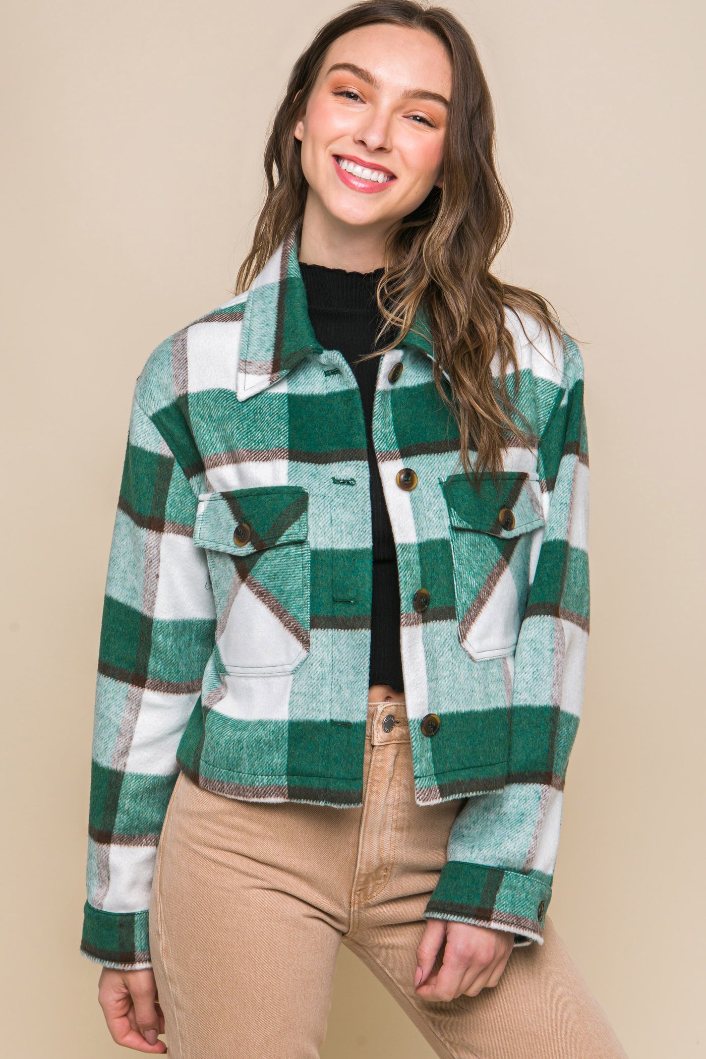 Imported S.M.L Yarn Dyed Plaid Button Up Jacket 100% Polyester Green LOV