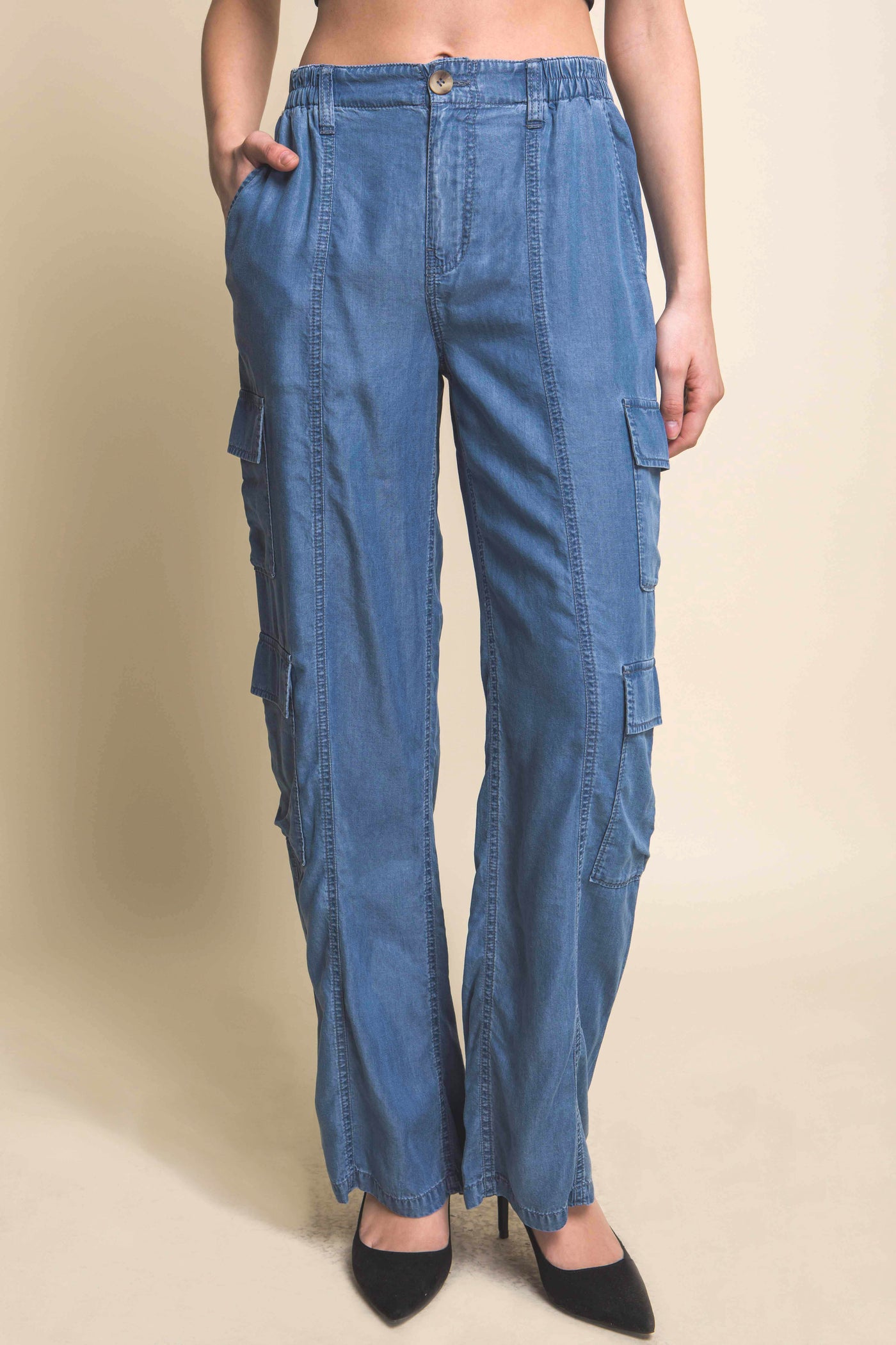 Elevate your style with our Full-Length Tencel Pants with Cargo Pockets in stunning Blue. Shop now and experience comfort and style in one chic piece!