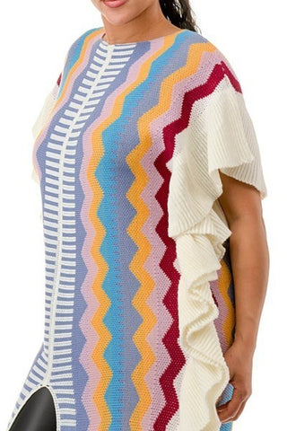Imported S.M.L KNIT.��SIDES RUFFELED SLEEVES.��ZIG ZAG DESIGN.��FRONT & BACK SLIT OPEN.��SIDE SLIT OPEN 100% Acrylic�� Blue/Combo LSE
