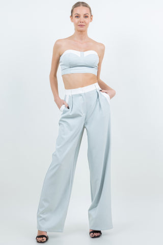 Tube Crop Top With 2 Pocket Wide Leg Pant Suit Set