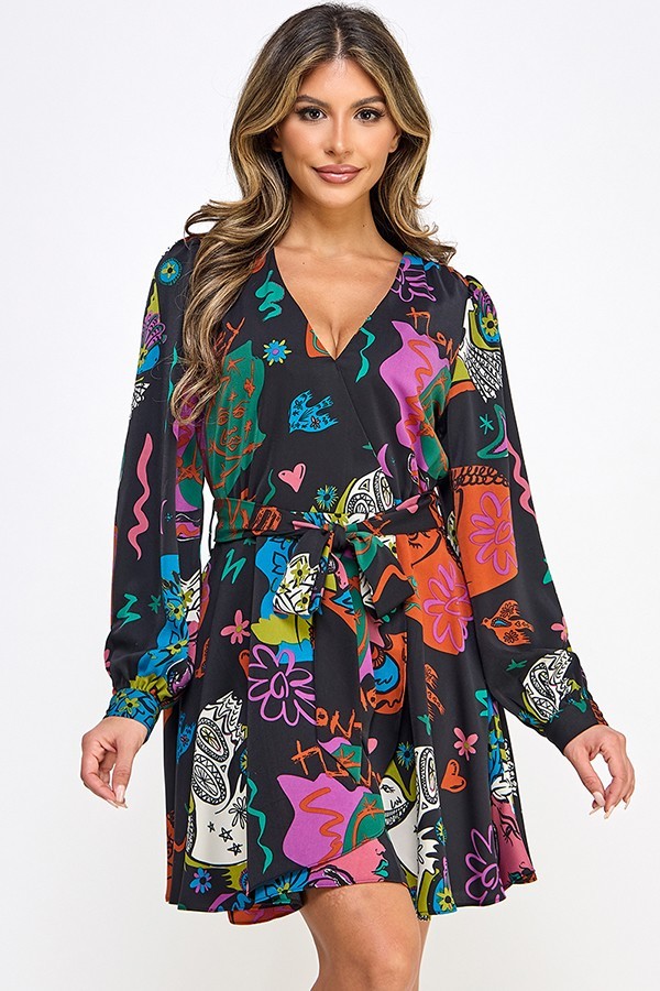 Elevate your wardrobe with our Printed Long Sleeve Mini Dress with Belt in Black. Order now and experience the perfect blend of fashion and comfort!