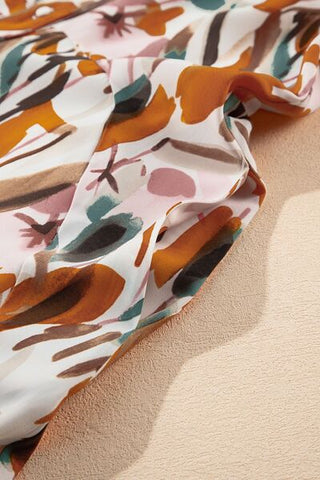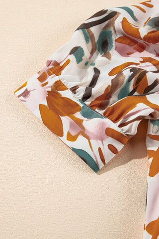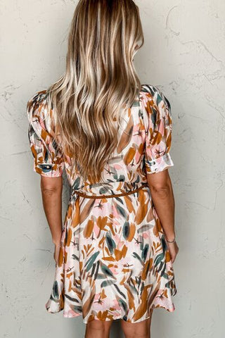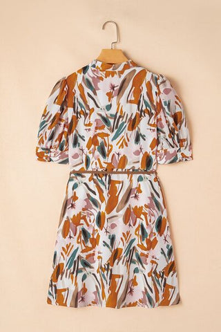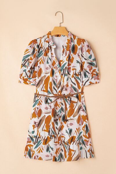 Inform when this item available: Printed Notched Short Sleeve Mini Dress - Brown / L