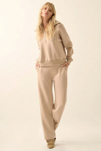 2. Design: These knit pants feature a solid color, a high-waisted design, a hidden zip-up fly with a button closure, a back elastic waist, and a relaxed fit for a versatile and chic look.