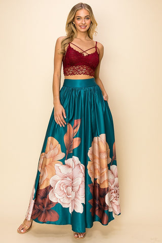 ImportedS.M.L.XLPRINTED MAXI SKIRT.��ELASTIC WAIST.��EXTRA WIDE SKIRT.��POCKETS100% Polyester��GreenQMP