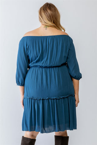 Imported 1XL.2XL.3XL Combo, printed, textured, solid color, ruffle details, round neckline, midi sleeves, flare hem, mini length, semi-stretchy, lined, non-sheer, casual, cute, lifestyle, girlish, must-have 100% Rayon Teal TSH