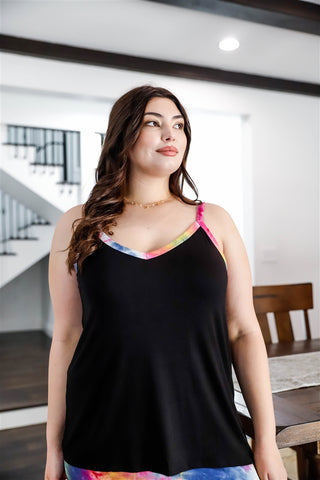 Made In U.SA 1XL.2XL.3XL Black, striped pattern, v-neckline tank top with straps, fitted, maxi length skirt, relaxed fit, unlined, stretchy, non-sheer, casual, loungewear, stylish, comfy 96% Rayon 4% Spandex Black/Stripe TSH