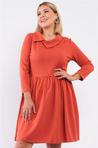 Imported 1XL.2XL.3XL solid, preppy fit & flare pleated style, asymmetrical Peter Pan type collar, long sleeve, unlined, regular fit, stretchy, casual, cute, vintage look, retro, minimalistic design, fall/winter collection 95% Polyester 5% Spandex Ginger TSH
