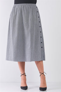 Plus Size Black Gingham Print Side Button Midi Skirt Sale