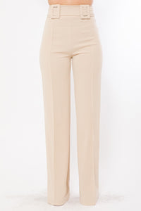 ImportedS.M.LHIGH WAIST PANTS WITH SELF FABRIC BUCKLE DETAIL ON THE WAIST95% Polyester 5% Spandex Beige VAL