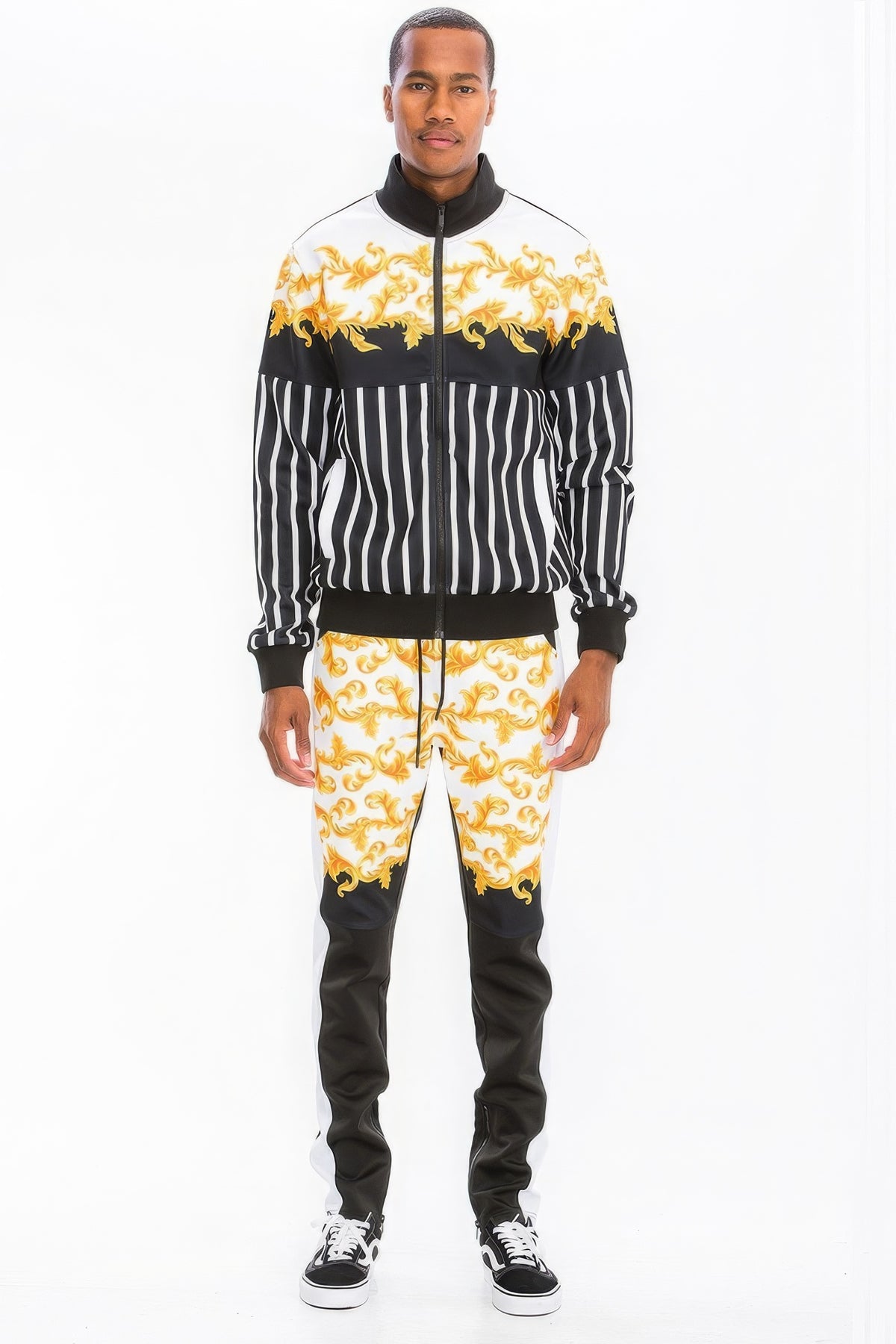 Introducing our Digital Print Track Set Sweatsuit, a contemporary and stylish ensemble that effortlessly blends comfort with trendsetting design. Available in sizes small (S), medium (M), large (L), extra-large (XL), and 2XL, this polyester sweatsuit features a captivating digital print, a hooded full-zip track jacket, standard pockets, ankle zipper details, and a comfortable regular fit.