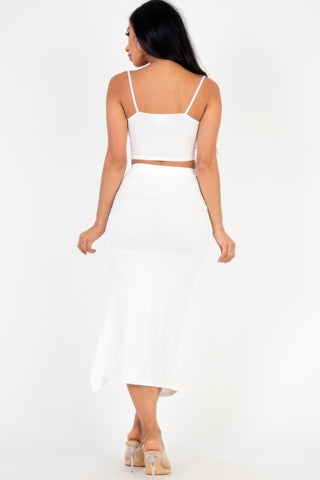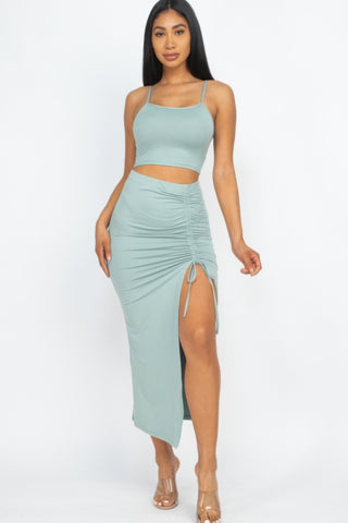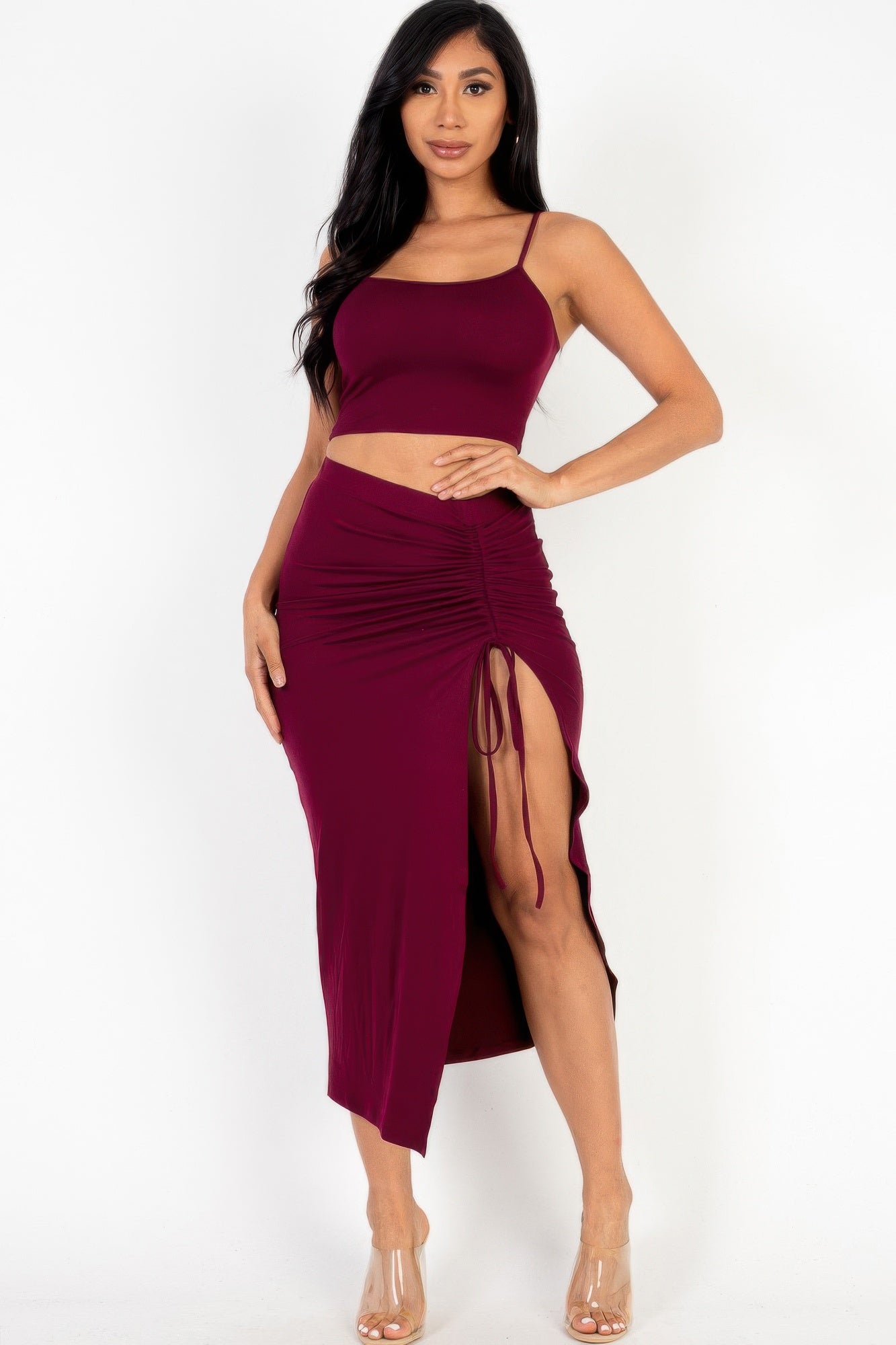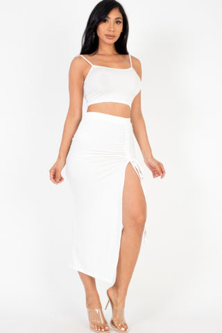 Cami Crop Top & Ruched Side Split Hem Midi Skirt Set