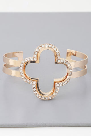 This bracelet is ideal for those who appreciate stylish accessories with meaningful symbolism. The lucky clover design adds a personal touch while the gold and clear jewels create a luxurious finish, making it a versatile piece for any occasion.
