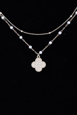 Double Pearled Clover Necklace - Gold cream
