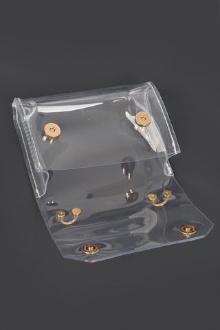 Elevate your style with our Clear Cross Body Bag, a trendy yet practical accessory that blends functionality and fashion seamlessly. With its clear PVC material and metallic accents, this bag offers a contemporary look while keeping your essentials accessible and visible. Whether you're attending a concert, sporting event, or simply need a sleek everyday bag, this crossbody is your go-to choice.