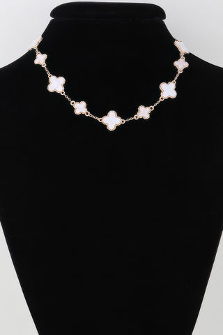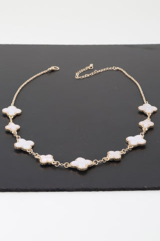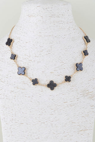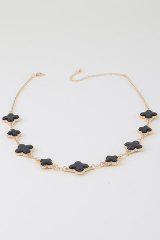 Discover the Multi Stone Clover Necklace, a beautifully crafted piece that combines the purity of white clover with the luxurious touch of gold. This elegant necklace is designed to elevate your style, adding a sense of sophistication and charm to every occasion. Available in both Gold/Black and Gold/Cream color options, It's the perfect accessory to enhance your jewelry collection.