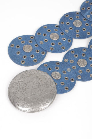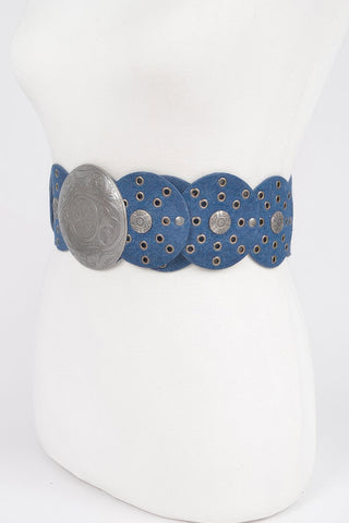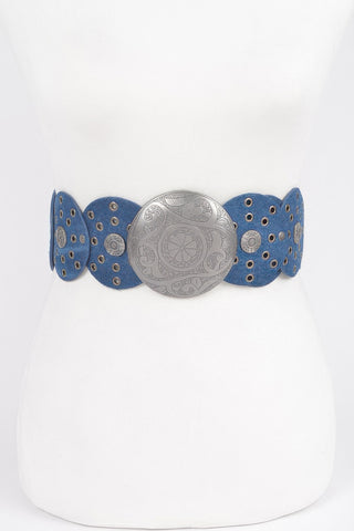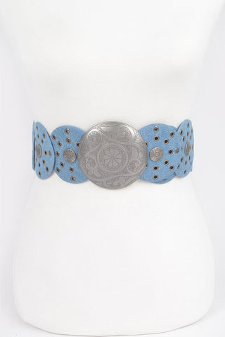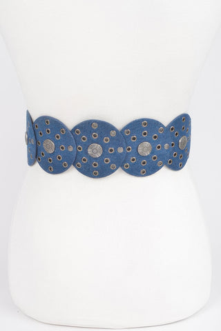 Denim Multi Eyelet Rounds Western Belt - Light blue