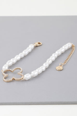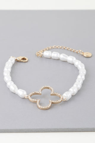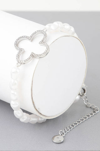 Add a sophisticated touch to your jewelry collection with the Open Clover Pearl Beaded Bracelet. Order now and embrace effortless elegance!