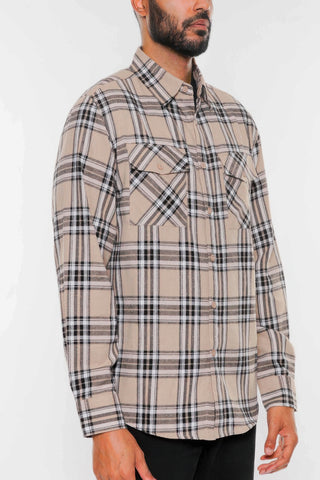 Long Sleeve Flannel Full Plaid Checkered Shirt - Black Mocha / S
