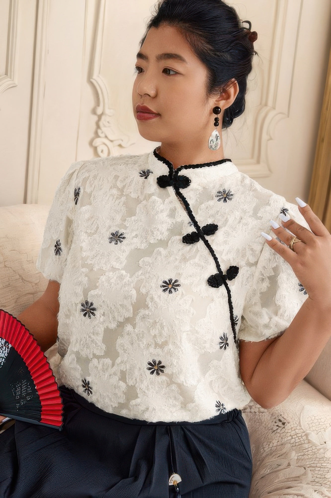 Plus Color Black Lace Trim Loose Fit Chiffon Top Sale